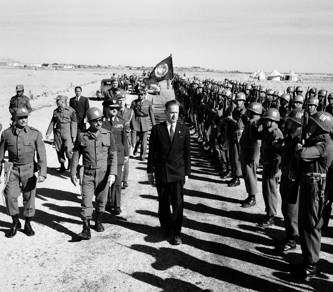 Az első békefenntartást támogató lépést 1948-ban tette meg az ENSZ, amikor létrehozta a Közel-keleti Fegyverszüneti Felügyelő Szervezetet (United Nations Truce Supervision Organization in the Middle East – UNTSO), melynek fő feladata a ma napig, hogy az izraeli határ mentén kötött fegyverszüneti egyezményeket betartassa. Szintén napjaikban is működik a Pakisztán és India közötti konfliktusok helyszínén, Kasmírban elért fegyverszünetet ellenőrző, 1949-ben felállított ENSZ Katonai Megfigyelő Csoport Indiában és Pakisztánban (UNMOGIP). Az első tényleges katonai erőt is felvonultató misszió, Az ENSZ Első és Második Rendkívüli Hadereje (UNEF-I és II) azonban már túllépett az egyszerű megfigyelői feladatokon, és immár tényleges katonai erőt is alkalmazott 1956-ban a szuezi válság megoldására, valamint 1973-ban az egyiptomi és izraeli csapatok szétválasztására. A rendkívüli haderő történetének kutatásához hasznos forrás lehet az 1960-ban kiadott The United Nations Emergency Force: Basic Documents című kötetünk, az első bevetések tapasztalatairól pedig Arthur Lee Burns és Nina Heathcote 1963-as kiadású Peace-keeping by U.N. Forces from Suez to the Congo című mű tartalmaz további adalékokat.