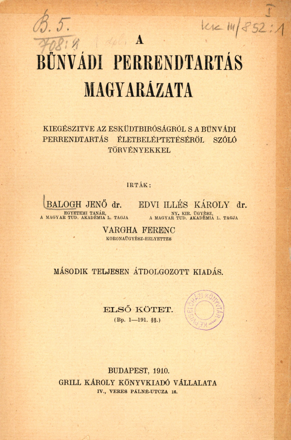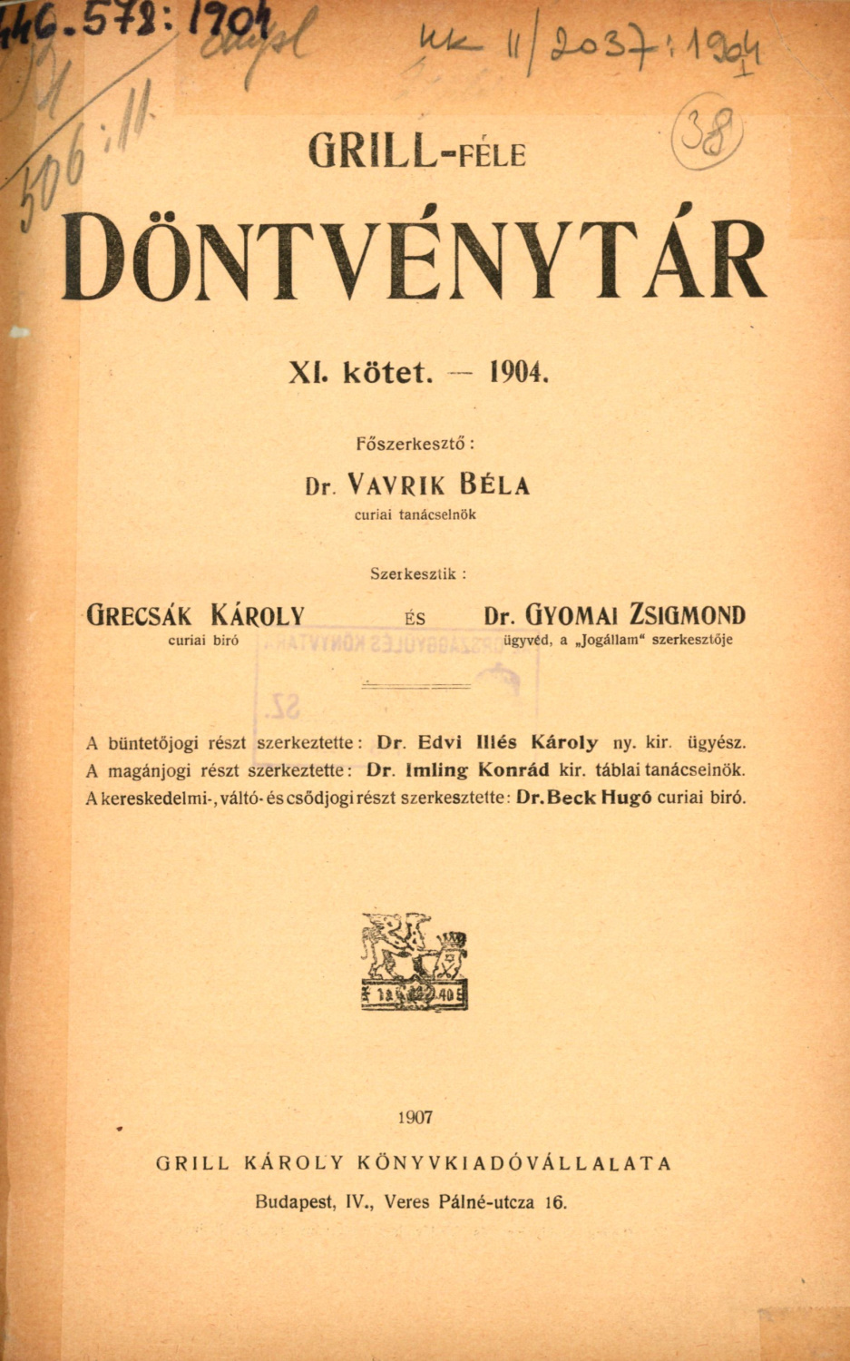 Jogi könyvkiadás egykor – Régi idők jeles kiadói 4. Grill Károly Könyvkiadó Vállalata (Grill-féle könyvkereskedés)