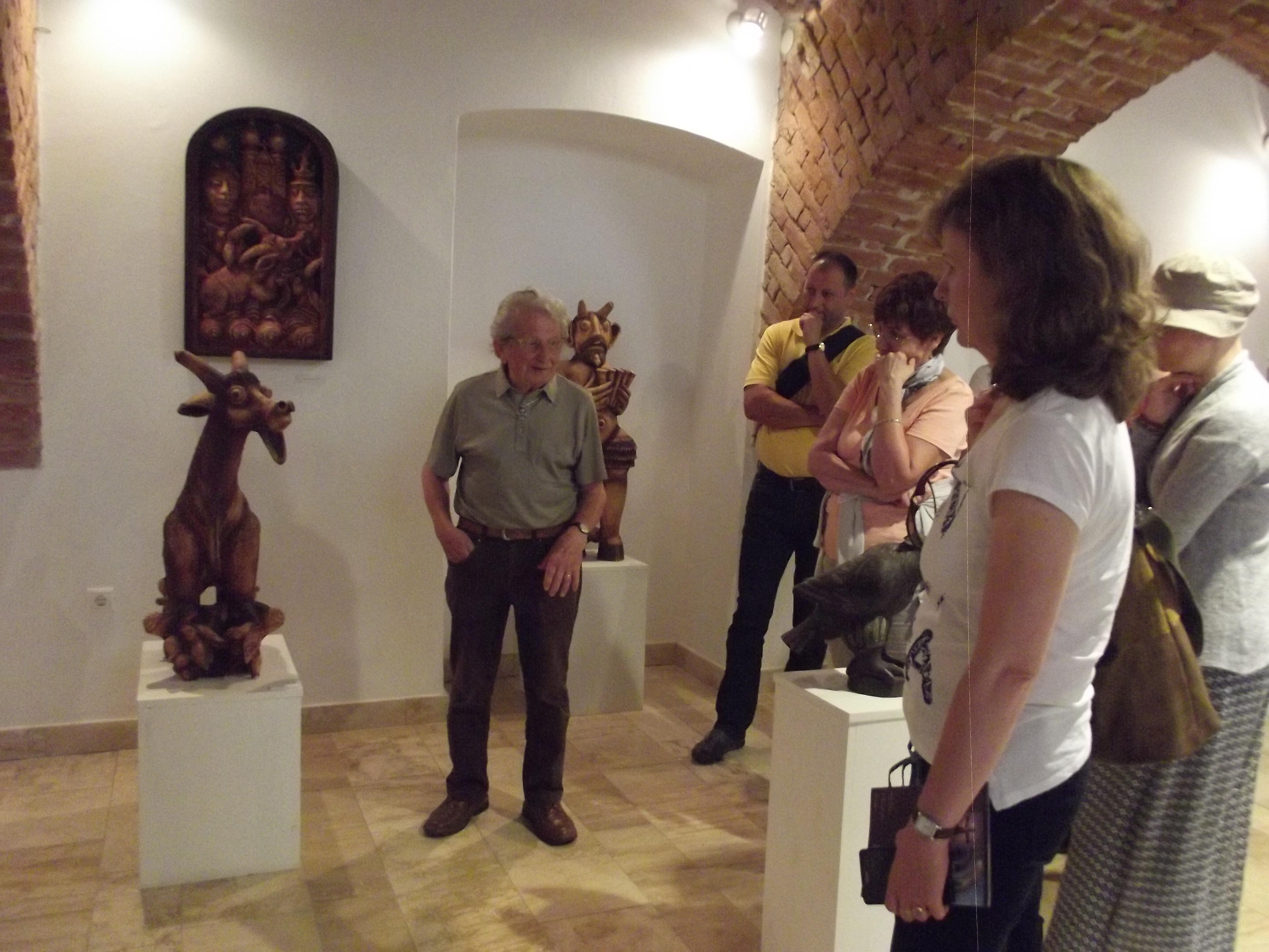 Kaján Imre igazgató úr szívélyes köszöntését követően a Nemzet Művésze, a Kossuth-díjas szobrász, keramikusművész Németh János remekműveiből álló állandó kiállítás megtekintése következett az alkotó személyes vezetésével.